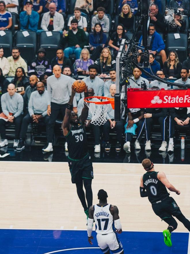 克拉克外線取分,比賽進(jìn)入暫停。距離終場不足6分鐘,森林狼領(lǐng)先26分鎖定大局,芬奇換上板凳席末端的球員。國王追分乏力,隨后也換下了首發(fā)。兩隊(duì)開始在場上練兵,時(shí)間逐漸走完。最終,森林狼以144比117完勝國王,得以實(shí)現(xiàn)2連勝。