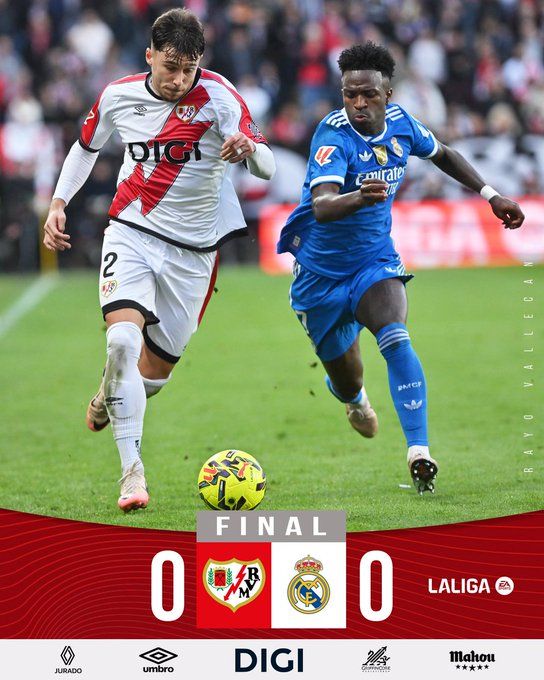 北京時間11月9日23:15,西甲聯(lián)賽第12輪,巴列卡諾主場迎戰(zhàn)皇馬。上半場維尼修斯、勞爾-阿森西奧失良機(jī),兩隊(duì)暫0-0戰(zhàn)平;下半場兩隊(duì)也都沒能改寫比分,最終皇馬0-0巴列卡諾,聯(lián)賽四連勝終結(jié)。